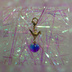 小さな折り鶴が金に輝くかわいらしいチャームです。金箔を散らしたようなガラス玉と組み合わせて、涼しげに仕上げました。
