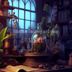 ファンタジー世界の植物学者の研究室の机の上-背景素材