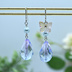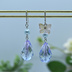 作家様からご提供いただいたアクリル製の手染めビーズで、シンプルな耳飾りをお仕立ていたしました。 左右で少しだけ長さの違う、アシンメトリーな耳飾りです。 こちらは青紫から青色のグラデーションにパープルの蝶々の耳飾りになります。 他のお色もございますので、ぜひ出品一覧をご覧ください。 ※手染めビーズは色の似通ったものでもロットが違うものに関しては別色としてカウントしておりますので、予めご了承ください。 また、染まり具合にそれぞれ微妙な差がございますが、それも味と感じていただける方にお迎えいただければと思います。 メインに使用した大きな雫型のビーズはアクリル製です。 パールビーズは上質なブルーの樹脂パールを用いています。 蝶々のビーズは材質不明となります。グラデーションカラーにキラキラと金色の模様が入り、とてもかわいらしい印象です。 フックピアスはステンレス製ですが、サージカルステンレスではございませんのでご注意ください。 長さ(モチーフ部分):約3.5㎝ 写真はフックピアスでお仕立てしたイメージです。 ※フックピアス/樹脂フックピアスへの変更は無料で承ります。 ご希望の場合はメッセージでご連絡ください。 ※アレルギー対応ピアスやイヤリングへの変更をご希望の場合には、以下のオプションを同時にご購入ください。 ・サージカルステンレス製金具に変更 https://yuu3004.booth.pm/items/4335135 ・ピアス・イヤリング金具 変更オプション https://yuu3004.booth.pm/items/4858199 ※minneでも販売中のため、タイミングによっては品切れとなる場合がございますが、予めご了承ください。