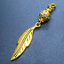 マスク・スマホチャーム ゴールドカラー フェザーとメタルビーズを組合せたチャーム 金具変更可 ジャックピン追加可