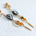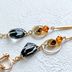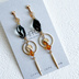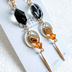 岩・石をイメージする鉱石型のブラックパーツの中にはシェルを少し入れ、 ポイントのオレンジとスレンダーなイメージのゴールドロングパーツを繋げた 揺れる細身のイヤリングです。