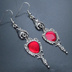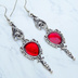 アンティークシルバー ゴシック調レッドミラーチャームのピアス ヴァンパイア パンク ロック サージカル可