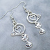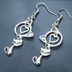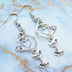 アンティークシルバー 猫モチーフと猫フェイスフレームのダブル猫ピアス スワロフスキークリスタル サージカル変更可