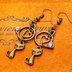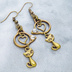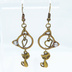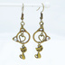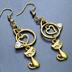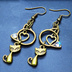 アンティークゴールド 猫モチーフと猫フェイスフレームのダブル猫ピアス スワロフスキークリスタル