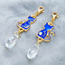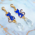 エナメルの青い猫モチーフにお日様と夜空の三日月を描いた左右で異なる絵柄の大人可愛いチャームです 甘くなりすぎない可愛さがある猫モチーフに透き通る輝きのティアドロップ型ガラスクリスタルを吊り下げて輝きをプラスしています マットゴールドとブルーのカラーの組合せによって華やかでありながらもコンパクトなサイズにまとめたチャームに仕上がっています マスクチャームにもスマホチャームにも出来るようサイズを抑えた可愛いチャームです 耳周りにつけるとピアスのように見えます マスク以外にもチャームとしても使えますので、キーホルダーの彩りにも、デスクで飾って楽しくこともできます マスクチャームとしてご利用の場合には紐状のマスクに適しています スマホチャーム・アクセサリーとしても程よい大きさでおすすめのアイテムです チャームの金具にスマホジャックピンのダブルリングにつなげればスマホチャームとしてご利用いただけます ジャックピンに付属するダブルリングはカラーを統一してマットゴールドカラーにしてあります 普段使うスマホに大好きなチャームをプラスすることで日常に潤いや癒やしをプラスさせてはいかがでしょうか ※モチーフは亜鉛合金にメッキ加工、ピアス金具などはスチール製ですので、金属アレルギーの方はご注意ください ※こちらは金具のカニカンをナスカン(約22mm)に変更が可能です。フィット型のヒモ部分が広いマスクに適しています 【重要】 ※モチーフの絵柄でどちらかを必ずお選び下さい。またセットでお求めになるとお得になります 「素材」 亜鉛合金:メッキ加工 ガラス スチール・合金(金具など) 「寸法」 全長(カニカン含む):約47mm 猫サイズ:約16mm×13mm 重量:約1.8グラム 【ご注意】 ※ご使用のモニターの色の違いにより、実際の商品と色味が若干異なる場合がございます NN-MC150