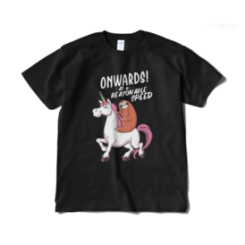 Tシャツ(短納期) - XL - ブラックこれはおもしろいナマケモノとユニコーンのデザインがプリントされたシャツで、パーフェクトなプレゼントアイテムです。ユニークな組み合わせのデザインは笑いを誘い、楽しい雰囲気を演出します。ナマケモノとユニコーンのキャラクターが一緒に描かれており、愛らしさとユーモアを兼ね備えています。このシャツは、友人や家族への贈り物として最適であり、笑いと喜びを提供します。快適な素材で作られており、日常のカジュアルなスタイルにぴったりです。