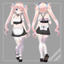 ※本商品に「【オリジナル3Dモデル】Trinya -トリーニャ-【JessieJuicebody】」,「【3Dキャラクター】キャルロン【JJBody共通素体】」本体は含まれておりません。別途お求めください。 【オリジナル3Dモデル】Trinya -トリーニャ-【JessieJuicebody】 https://booth.pm/ja/items/5752671 【3Dキャラクター】キャルロン【JJBody共通素体】 https://takewaka.booth.pm/items/5756967 ◆へそ出しショート丈のシンプルなコスプレメイド服◆ ●内容● ・メイド服上下 ・カチューシャ ・チョーカー ・カフス ・ドロワーズ ・ニーハイソックス ・パンプス