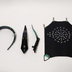 エナメルレザー製の角をイメージしたカチューシャと、レザー製フェイスベールのセットです。