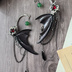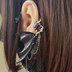 右耳 1個 左耳 2個 運命の歯車が、光と影を紡ぎ出す 鋭く伸びる黒翼と、真紅に輝く宝石が組み合わされた、ダークファンタジーの世界観をそのまま形にしたイヤーカフフック。 吸血鬼の牙を思わせるシャープなラインと、揺れるチェーンが放つ鈍い輝きが、圧倒的な存在感を放ちます。 左右どちらの耳にも装着可能で、ピアス穴がなくても楽しめる仕様。 華やかさよりも“異端の美”を追い求めたい方に、特におすすめの一点です。 赫月ノ顎(赤ビジュー×黒翼) 銀色のフックと重厚な黒翼、そして赫く輝くビジューが織りなす、鋭利で孤高な世界観。 闇夜に浮かぶ紅い月のように、妖しくも鮮烈な印象を残すデザインは、ダークロマン・スチームパンク・ゴスロリ系すべてに調和します。 装着するだけで、まるで物語の中の存在になったかのような錯覚を楽しめるアクセサリーです。 【スチームパンクイヤーフック/ダークアクセサリー/赤ビジュー/黒翼モチーフ/ゴシックファッション】 ご使用にあたってのご注意 ・固定部分は接着剤とレジンで丁寧に加工しております。強度は高いですが、強い衝撃を与えると破損する場合がございますので、やさしくお取り扱いください。 ・金属パーツを使用しております。金属アレルギーをお持ちの方は、ご使用をお控えいただくか、十分にご注意ください。 ・イヤーカフやイヤーフックは、長時間着けても痛くなりにくい仕様ですが、着け心地には個人差がございます。 気になる点やご不安な点がございましたら、ご購入前にお気軽にお問い合わせください。