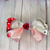 大きめのリボンの両端に小さいリボンが1つずつついたリボンバレッタです。 白のサテンリボンとピンクのサテンリボン、赤と城の水玉模様のサテンリボン、白と黒の水玉模様のサテンリボンを使用しており、表面に光沢があります。 中央には、レッドのハート型ビジューパーツ、星型のクリアビーズをあしらっております。 7cmバレッタ金具(材質:銅、鉄) 全長 約12cm×高さ 約6cm ※アマチュアのハンドメイド作品であることをご理解の上、作品をお迎え下さい。 ※画像はイメージです。色味や形状などが多少実物とは異なる場合がございます。 ※大変繊細な仕上がりとなっております。お怪我の原因になりかねますので、必要以上に力を加えないで下さい。 ※汗、水に弱い素材でできております。濡れた場合は丁寧に水分を拭き取ると長持ちします。 ※金属アレルギーをお持ちの方は、十分にご注意下さい。