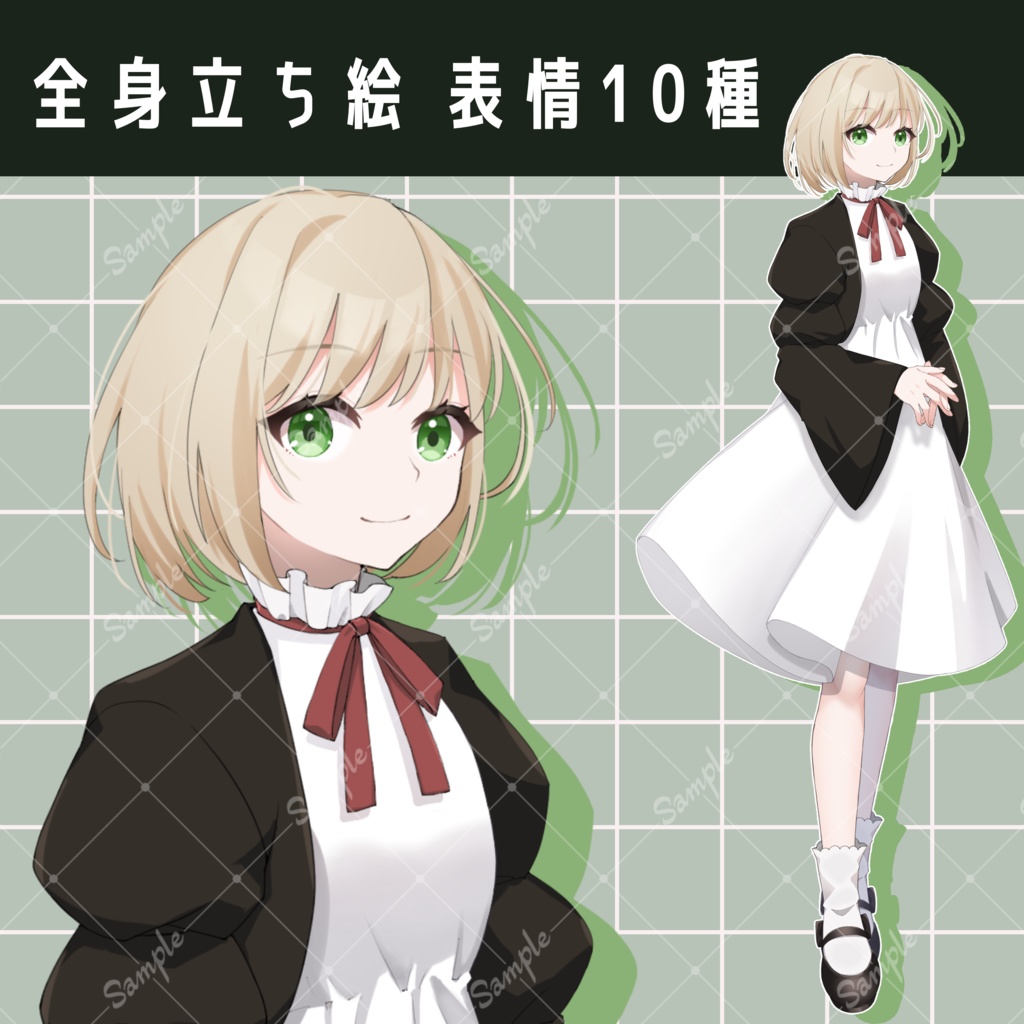 【無料版あり】女性_ワンピース_表情差分あり【全身立ち絵素材】