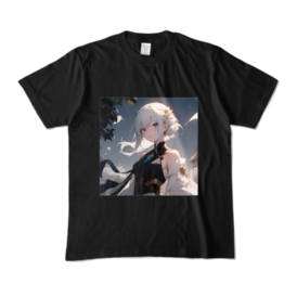 カラーTシャツ - XL - ブラック (濃色)この商品はpixivFACTORYで作られた商品です。サンプル画像は完成イメージのため、実物と異なる場合があります。 "幻想少女" Tシャツは、夢と魔法の世界を纏ったアートで、あなたの日常に魔法を添えます。柔らかな生地と洗練されたデザインが、あなたを幻想的な冒険へ誘います。夢見る心と自由な発想を持つ少女たちに捧げる、魅惑的でエレガントな一枚です。日常に魔法を纏って、幻想の中で自由に舞いましょう。