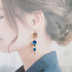 キラリと輝くジルコニア風ストーンのスクエアチャームと小さめサイズのビーズが中で揺れる飾りフープに12mmとかなり大きめサイズの海を感じる幻想的なカビラマリンと呼ばれるブルー色が綺麗なとんぼ玉ビーズやチェコメロンビーズなどを合わせた豪華な大ぶりロングピアス/イヤリングとなっております。 メインのお色は母なる海をイメージしたブルー色、ゴールド金具と合わせて幻想的で涼やかな雰囲気でまとめました☺ メインに使用したとんぼ玉は石垣島の川平湾をイメージして作られたカビラマリン色と言われるとんぼ玉ビーズになります。ホタルガラスで作られたこちらのビーズは光に当たると様々な青を魅せてくれ、更に蓄光タイプとなっており、光を集めて暗い場所でもホタルのように幻想的に光るとても美しいビーズになっております。 海を感じるブルー色などがお好きな方にはもちろんや揺れるタイプのデザインや耳元を華やかに魅せたい方におすすめの作品となっております☆ サイズはピアス金具を含め約8cmとかなりロングサイズとなっておりますので、耳元の一気にゴージャスに魅せてくれると思います。 アレルギー対応のピアスやイヤリングへの変更についてはご注文時にオプションよりご希望金具をお選び下さい。 ※こんな方におすすめ♪ *大切な方へのプレゼントに *海がお好きな方に *とんぼ玉ビーズがお好きな方に *耳元を華やか綺麗に魅せたい方に ☆とんぼ玉ビーズ(ホタルガラス) カビラマリン・蓄光タイプ ラウンド型 12mm玉 ☆チェコメロンビーズ カプリブルーゴールドライン 8mm ☆ファイアポリッシュチェコビーズ サファイア アメジスト 4mm ☆ガラスビーズ バイオレットオーロラ ボタンカット 4mm ☆ガラスビーズ メタリックブルー ボタンカット 4mm ☆ジルコニア風ストーン入りスクエアチャーム ゴールド 約8mm ☆飾りフープ ゴールド ☆チェーン ☆座金 ゴールド ☆メタルビーズ ☆9ピン ☆Tピン ☆丸カン ☆ピアス用金具(フック式☆ゴールド) 長さは約8cmとなっております。(約1cm程のピアス金具を含む)