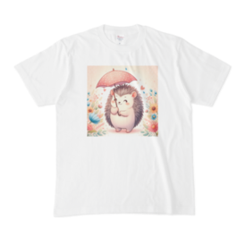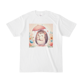 ハリネズミのイラスト入り白Tシャツ⑨