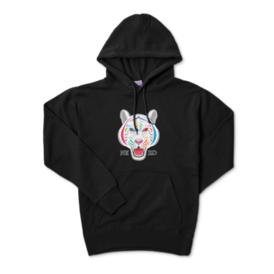 パーカー - XL - ブラックカラフルな縞模様の猫の顔デザインイラストです この商品はpixivFACTORYで作られた商品です。サンプル画像は完成イメージのため、実物と異なる場合があります。