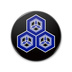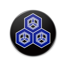 特大缶バッジ88mm 直江兼続家紋 三つ盛亀甲に三つ葉 黒地に青