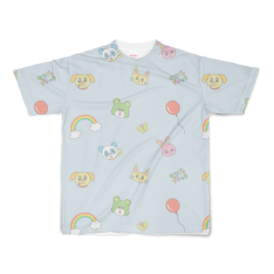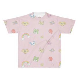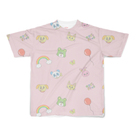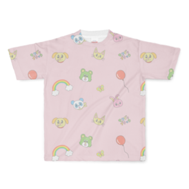 フルグラフィックTシャツピンク - L - 両面印刷(1)かわいい動物さん達の総柄Tシャツです。 ブルーとピンクから選べます。 ※プリントの位置がレインボー多めの別バージョンもありますので見てね! この商品はpixivFACTORYで作られた商品です。サンプル画像は完成イメージのため、実物と異なる場合があります。
