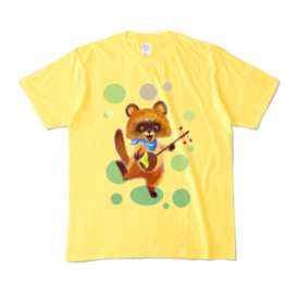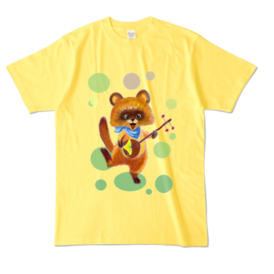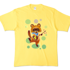 カラーTシャツ - XL - イエロー (濃色)この商品はpixivFACTORYで作られた商品です。サンプル画像は完成イメージのため、実物と異なる場合があります。 ●オリジナルイラストです ●ロックのリズムで踊るぽんぽこロック。