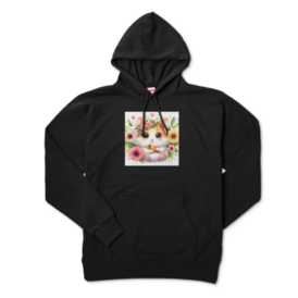 ハムスターのイラスト入り黒パーカー