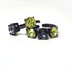 こちらは画像の右側、ビジューが3連になっている指輪の販売ページです。 ・3連ビジューリング(シルバーナイト×シトラスグリーン) 5.5~6mmのストーンを石座にはめ込んだ3連ビジューのリング。爪付きの高級感あるデザインが特徴です。サイズは約12号ですが調節可能なフリーリングとなっております。 シルバーナイトとシトラスグリーンで腕章リボン風に仕上げました。ガンメタ(ブラック)のメッキが個性的なリングです。 詳しい画像は後日追加致します。 ハーツラビュル寮イメージビジューリング https://zanryushinen.booth.pm/items/5698299 サバナクロー寮イメージビジューリング https://zanryushinen.booth.pm/items/5698301 オクタヴィネル寮イメージビジューリング https://zanryushinen.booth.pm/items/5698302 スカラビア寮イメージビジューリング https://zanryushinen.booth.pm/items/5698304 ポムフィオーレ寮イメージビジューリング https://zanryushinen.booth.pm/items/5698305 イグニハイド寮イメージビジューリング https://zanryushinen.booth.pm/items/5698306