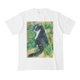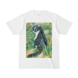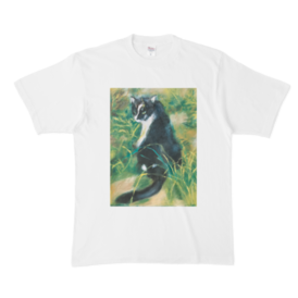 Tシャツ - XL - 白実際に描いた油絵からTシャツを作りました。偶然出会った猫との一場面を描いたものです この商品はpixivFACTORYで作られた商品です。サンプル画像は完成イメージのため、実物と異なる場合があります。
