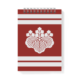 戦国武将 織田信長 豊臣秀吉の家紋「五三の桐」をあしらったメモ帳です。 色味は「赤に白」です。 金に見えるプリントは金に似た黄土色です、光ったりはしませんのでご了承ください。 用紙:アートポスト(表紙・裏表紙)、上質紙(本文) サイズ:A6 ページ数:80P(40枚) リングカラー:シルバー 印刷方式:インクジェット印刷 印刷:表紙・裏表紙フルカラー、本文無地 メモ帳,リングメモ,織田信長,豊臣秀吉,織田家,豊臣家,信長公,秀吉公,紋所,紋,武将,家紋,家紋風,紋どころ,エンブレム,和風,日本,ジャポニズム,日本風,侍,サムライ,アイコン,マーク,シンボル,紋章,デザイン,サイン,シンボルマーク,記号,歴史,歴史風,桐紋,五三の桐,白,赤,ホワイト,レッド,白色,赤色,縞,指物,旗,旗指物,