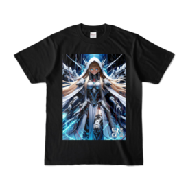 カラーTシャツ - XL - ブラック (濃色)「光の刃、闇を斬る」 銀河の秩序を守るためその剣は闇を切り裂き正義を貫く 冷徹な戦略家であり無敵の剣士として彼女の存在は戦場で絶対的な威厳を放つ どんな困難な局面でもバルトロメアの鋭い目と揺るぎない信念は勝利への道を示す 光と闇が交錯する銀河の戦いその中心で輝く彼女の伝説が銀河全土に響き渡る この商品はpixivFACTORYで作られた商品です。サンプル画像は完成イメージのため、実物と異なる場合があります