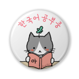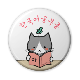 한국어공부중(韓国語勉強中)缶バッジ 読書 ピンク