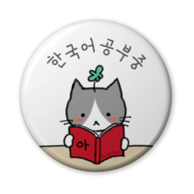 한국어공부중(韓国語勉強中)缶バッジ 読書 あか