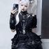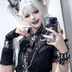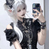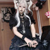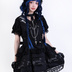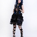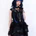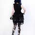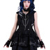 Jillpunkハロウィン 派手ゴシック クール系 ダーク風 枝つき燭台 コウモリ襟 コルセットピアス クロスチャーム 鎖チェーン付き フリルレース スリーブレス ベストドレス ワンピース ゴシックロリータ フェミニン おしゃれ ファッション オリジナル