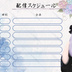ちびっとしょっぷ梅雨週間配信スケジュールダウンロード商品¥ 0無料ダウンロード6月の配信スケジュール_-_あじさい1_週間配信カレンダー_縦.png (2.99 MB)無料ダウンロード6月の配信スケジュール_-_あじさい2_横.png (3.25 MB)無料ダウンロード6月の配信スケジュール_-_あじさい3_横.png (3.18 MB)無料ダウンロード6月の配信スケジュール_-_あじさい1_背景.png (3.07 MB)無料ダウンロード6月の配信スケジュール_-_あじさい2_背景.png (3.36 MB)無料ダウンロード6月の配信スケジュール_-_あじさい3_背景.png (3.28 MB)無料ダウンロード6月の配信スケジュール_-_あじさい4__背景.png (3.48 MB)無料ダウンロード6月の配信スケジュール_-_あじさい_横_透過_月あり.png (337 KB)無料ダウンロード6月の配信スケジュール_-_あじさい_横_透過_月なし.png (319 KB)「ギフトとして贈る」とは6月の週間配信スケジュール用の 素材作ってみました! 立ち絵を置いて、予定を書くだけなので とても簡単に使えます! 良ければぜひ使ってください! #ちびっと素材 No,4 僕のX(旧Twitter)の❤️と♻️で使用可〜! ❌悪用、再配布はしないでください❌ ❤︎ぜひフォローもお願いします❤︎ #Vtuber素材 #フリー素材 #IRIAM素材 #配信スケジュール ちびっとしょっぷFANBOX開設中素材(その他)ハロウィン風おはV素材ちびっとしょっぷ¥ 0素材(その他)秋のフルーツ風おはV素材ちびっとしょっぷ¥ 0素材(その他)秋チェック 週間配信スケジュールちびっとしょっぷ¥ 0素材(その他)秋サムネ素材ちびっとしょっぷ¥ 0素材(その他)ハロウィン週間配信スケジュールちびっとしょっぷ¥ 0素材(その他)紅葉 おはV素材ちびっとしょっぷ¥ 0素材(その他)七夕風週間配信スケジュールちびっとしょっぷ¥ 0素材(その他)ジューンブライド風週間配信スケジュールちびっとしょっぷ¥ 0素材(その他)秋の紅葉週間配信スケジュールちびっとしょっぷ¥ 0素材(その他)グッドモーニング あさだよー!ちびっとしょっぷ¥ 0素材(その他)#鏡よ鏡真実をおしえてちびっとしょっぷ¥ 0もっと見る