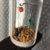 灯火には蓄光塗料を使用しておりますので暗闇やUVライトで蛍光します。 高さ約54mm 直径約22mm 主な材料・ガラス瓶、砂溶きボンド、ビスマス人工結晶 ※注意事項 到着時の破損につきましては対応いたしますのでご連絡願います。 微に入り細に入り実物を見た際に見える細かな傷、 印象の違い、想像されていた色味との違い等 写真から判定できる明確な破損以外の事柄に関しては 対応できかねますのでご了承願います。 全て一点物になりますので個体差があります。 ガラス製品なので思わぬ衝撃で破損する恐れがあります。注意して取り扱ってください。 蓋のコルクは外れる恐れがあるのでアクセサリ等として使用することは絶対にお止めください。 収れん火災や劣化を避けるために直射日光を避けカビ予防のために高温多湿を避けて保管してください。 小さなお子様やペットがいるご家庭は誤飲にお気をつけください。 事故が起きましても責任を負いかねますので予めご了承ください。