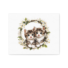 双子猫のフラワーリース:キャンバスアート