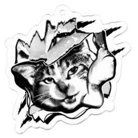 アクリルキーホルダー - 50 x 50 (mm)2023年11月7日に我が家のフスマを貫通させたネコ「弥勒」の1周年記念のアクリルキーホルダーです。フスマを貫通させた瞬間をおさめた大迫力アイテム!