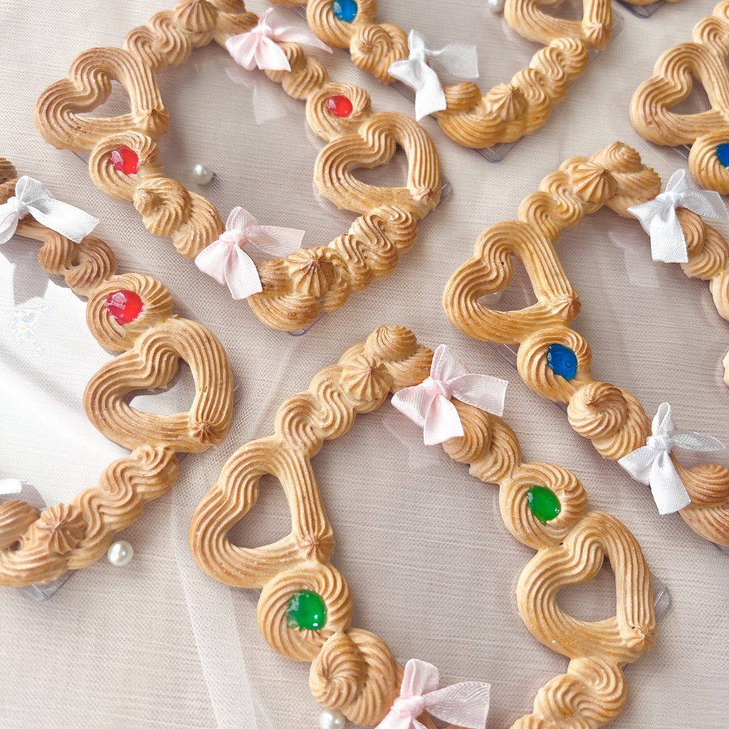 ご覧いただきありがとうございます😊 ご購入前に下記ご確認くださいませ。 ☆ *月末までは「注文後すぐに支払い済みになるお支払い方法のみ許可」を設定しています。 月初めから通常設定です。 *同梱発送ご希望の場合は、お品物を全てカートに入れた状態でお手続きをお願いいたします。 匿名配送を利用しているため、ご注文後の変更はできかねます。 大変恐れ入りますが、ご理解・ご協力をお願いいたします。 ☆ 【こちらはB8サイズです】 B8サイズの硬質カードケース絞りだしクッキーデコです🍪 ケースを絞りだしクッキーで囲み、ジャムやリボンで飾り付けしています✨ ハートの中は空いているので、ご使用カードのデザインも見えますよ😊 以下のお色味からお選びください A白リボンx青赤ジャム (画像内Aよりランダム発送) Bピンクリボンx赤ジャム C白リボンx緑赤ジャム Dピンクリボンx緑ジャム E白リボンx青緑ジャム F水色リボンx青ジャム ※ホイップによりお写真が見えづらくなる可能性もございます。 恐れ入りますが、ケースに合わせてお写真をお選びくださいませ。 長期間立てかけてのご使用は破損の恐れがありますのでお控えください。 *melleetのホイップデコは接着剤を使用しています。 裏面(お写真を入れると見えなくなります)や 側面からのぞいた際に接着剤が見えてしまうこともございます。 ご了承くださいませ。 --- ☆作品について こちらはフェイクスイーツで食べられません。 小さなお子様やペット、認知症の方など口に入れてしまわないようご注意下さい。 ハンドメイド品のため、強く引っ張ったり落としたりするとパーツがとれて壊れてしまう恐れがあります。 優しくお取り扱い下さい。 (パーツが取れてしまった場合は接着剤などで接着いただきますようお願い致します。) 作品は全て手作りです。 作品ページの写真と色味が異なる場合がございます。 また、細かいちりなどが混じってしまう場合もございます。 手作りの商品ということをご了承いただいた上、基本ノークレームノーリターンにてよろしくお願い致します。 発送方法はあんしんBOOTHパックのみです。 ☆お取り扱い・ご購入について☆ 作品について ・こちらはハンドメイド作品です。 既製品などに比べると強度で劣る部分があります。 パーツなど引っ張ったりせず優しくお取り扱いをお願いします。 また、ハンドメイド作品につき完璧を求める方のご購入はお控え下さい。 ・埃の混入など注意を払っておりますが まれに細かい埃などが混じってしまう可能性があります。 ・水に弱い作品です。 水場は避けてご使用ください。 埃などのお手入れの際は乾いた柔らかい筆が便利です。 ・長くお楽しみいただくために 高温多湿、直射日光を避けてご利用、保管をお願いします。