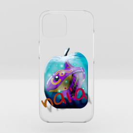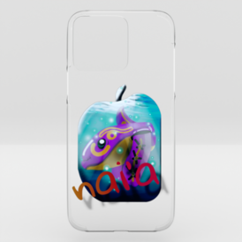 クリアiPhoneケース - iPhone 13 miniピンクのイルカが入った水玉を禁断の果実の形にしてみました。