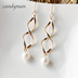 【送料込み】くねくねチャームとホワイトカラー淡水パールのピアス 入学式 卒業式 入園式 卒園式