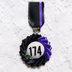 こちら素人によるハンドメイドのロゼットになります。 丁寧に作成しておりますが、多少のバラつき、接着剤跡などございますので、ご了承いただける方のみお願いします。 ラインストーン等ボンドで接着しております。 ロゼット、数字部分は両面テープを使用しておりますので危ないと感じた際には補強をお願いいたします。 裏側のブローチピンをご利用いただくか、ループにボールチェーンを通してご利用ください。(ボールチェーンは付属いたしません) 2枚目以降の画像はサイズ比較用のサンプル画像となります。 ご利用の環境によって色味が異なります。 市販品のような強度はないと思われますのでご理解いただいた上でご購入いただけますと幸いです。
