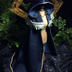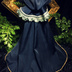 【濃紺】のローブは濃紺の高級感のあるインテリア生地を使用。 裏地はスウェードのような質感で淡い水色のような色合い。金色の糸でローブの裾部分を縁取り、ケープ部分には淡い色合いの水色をベースとしたトリムレースを使用しています。 装備すると魔力、魔法防御が上昇。(体感には個人差がありますのでご注意下さい。) 別売りのカスタムパーツ 「魔法少女のリボン」(¥300- ) をチェーン部分に装着する事が可能です。