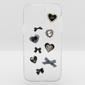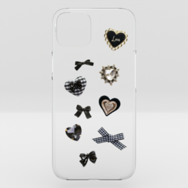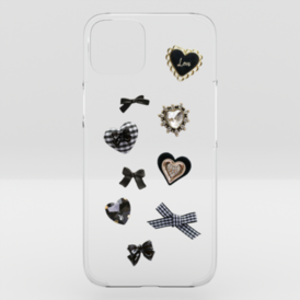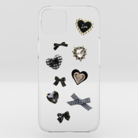black♡ハート&ビジューgirly parts/クリアiPhoneケース