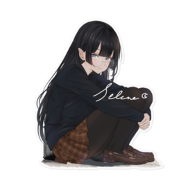 セレーネによるいいんちょーねの描き下ろしイラストを使用したステッカーです! 約150mm×120mmサイズの大きなステッカーです♡ 学生時代のとげとげアンニュイな姿をイメージしました! 材質:塩ビ(クリアタイプ / ホワイトタイプ) 印刷方式:溶剤インクジェット印刷