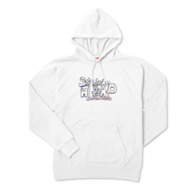 パーカー - XL - ホワイトFPSを始めとしたマルチゲームを複数名で楽しく遊んでいる【ししかもの人里】(仮称)のイメージグッズです。前面にはロゴ、背面にはメンバー8名をモチーフにした刺繡風のイラストがプリントされています。本体カラーによって価格が変わりますのでご注意ください。この商品はpixivFACTORYで作られた商品です。サンプル画像は完成イメージのため、実物と異なる場合があります。