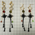 菊結び・雲・ドロップの揺れるイヤリング(黒紐・ゴールドカラー)