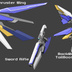 【概要】 ロボ・メカ少女向けの3Dモデル素材です。 大きい翼と羽根の付いた尻尾と剣の付いた銃です。