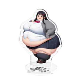 アクリルフィギュア - 50x50mmこの商品はpixivFACTORYで作られた商品です。サンプル画像は完成イメージのため、実物と異なる場合があります。制服女子肥満化シリーズ?から留学先で激太りした堀江あけみのアクリルフィギュアが登場。結構太いですね。