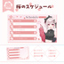 これからの季節にお使いいただける、 桜デザインの春らしいスケジュール素材です🌸✨ ✼••┈┈┈┈┈┈┈┈┈┈┈┈┈┈┈┈••✼ 【素材内容】 ・桜のスケジュール用画像 1枚 ・サイズ:縦720×横1280px ✼••┈┈┈┈┈┈┈┈┈┈┈┈┈┈┈┈••✼ 【ご使用可能範囲、注意事項について】 ■素材の加工編集について ・色味変更・・・不可 (ご希望が多ければ、カラバリ追加や色変更可能データ等を検討いたします) ■ご依頼制作への素材の使用(デザイナーさんの商業利用)・・・不可 ※ほか、ご使用に関して不明点等がございましたら当XアカウントやBOOTHのDMまでご連絡ください。 ✼••┈┈┈┈┈┈┈┈┈┈┈┈┈┈┈┈••✼ 【ご利用規約】 ・素材をそのままの状態で二次配布または譲渡・販売すること、自作発言、トレース、AI学習禁止✕ ・ご購入者様以外の利用✕ (事務所様の場合、事務所内で1つを共有ではなく、お一人様につき1つ購入お願いいたします) ・反社、公序良俗に反する利用✕ ・著作権、著作人格権は放棄しておりません。 ・ご購入者様都合による返金対応等はいたしかねます。 ・本素材の利用によって生じたトラブルについて、当方は一切の責任を負いません。 2025.3.7 記 ┈ ┈ ┈ ┈ ┈ ┈ ┈ ┈ ┈ ┈ ┈ ┈ ┈ ┈ ┈ ┈ ┈ ┈ ┈ ┈ ┈ ┈ ┈ ┈ ご利用の際は、当方の利用規約(プロフィール記載)もご一読ください。 ┈ ┈ ┈ ┈ ┈ ┈ ┈ ┈ ┈ ┈ ┈ ┈ ┈ ┈ ┈ ┈ ┈ ┈ ┈ ┈ ┈ ┈ ┈ ┈ みなさまに楽しんでご使用いただけましたら幸いです🌸 もし素材を気に入っていただけましたら、 Xアカウントのフォローや、こちらの商品ページへもお気に入りいただけましたら、大変励みになります。