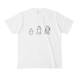 Tシャツ - XL - 白変幻自在の「HENGENうさぎ」の進化の過程を表しています。 なにも考えていなさそうな顔がチャームポイントです。 ───── この商品はpixivFACTORYで作られた商品です。サンプル画像は完成イメージのため、実物と異なる場合があります。