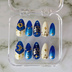イベント 星に願いを イメージネイルチップ 上段が左手デザイン、下段が右手デザインです。 チップ形状:アーモンド ︎✦︎付属アイテム 粘着グミシールシート2枚・ミニヤスリ・ウッドスティック サイズオーダー品となります。 画像を参考にチップサイズをご確認いただき、お選びください。 爪の一番広い部分の横幅がチップサイズ選択で必要となります。柔らかいメジャーで爪のカーブに合わせてお測りください(柔らかいメジャーがない場合はマスキングテープを爪に貼りペンなどでマークをつけ、そのサイズを定規などで測る方法もございます)。 サイズに迷われた場合・平爪の方は、ヤスリで調節出来るよう大きいサイズの選択がオススメです。 以下、ご注文の際にお送りいただく必要事項となります。 チップサイズ 左手(親指〜小指順): 右手(親指〜小指順): デザインの左右変更を希望される場合は、ご注文の際にご連絡ください。 ︎✦︎イメージ違い・サイズ不一致による返品交換不可となります。 ︎✦︎お使いの端末や閲覧環境により、写真と実物の色味や質感が多少異なって見えることがございます。ご了承ください。 ︎✦︎気泡やダストはチェックしておりますが、趣味で作成している品となりますので気になる方はご遠慮ください。 ︎✦︎保管がしやすいようオマケとしてチップケースにお入れしています。細かい傷がつきやすい素材のため扱いにお気をつけください。 ご注文から発送まで6日ほどお時間を頂戴します。
