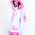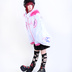 背中には大きめの主題イラストがドン!存在感抜群 袖は和テイストのワイドスリーブカットで動きやすく、個性も光る 両サイドにはグラデーションカラーのポケット+胸元に刺繍ロゴで立体感UP 立ち襟デザインでクールなシルエット、サイバーパンクスタイルにぴったり! ユニセックスなデザインで、男性も女性も着こなし自由自在 サイズは2種展開、カラーは「ピンク×ホワイト」と「ブラック×グリーン」の2色をご用意