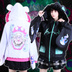 Jillpunk 台湾刺青師美味製造コラボ 和洋折衷 ナーガ召喚 サイバーパンク ネオン世界観 病みかわ 中毒性 キルティング フェイクファー付きクマ耳パーカー 着物袖 ウィンドブレーカージャケット オリジナル アニメ おしゃれ男女兼用